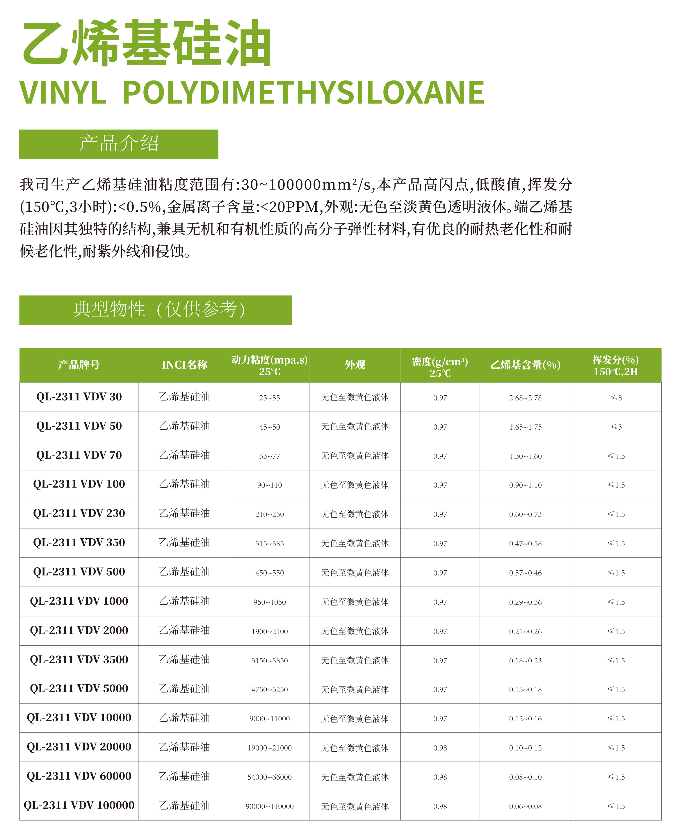 双封端乙烯基硅油30~100000粘度 端乙烯基硅油